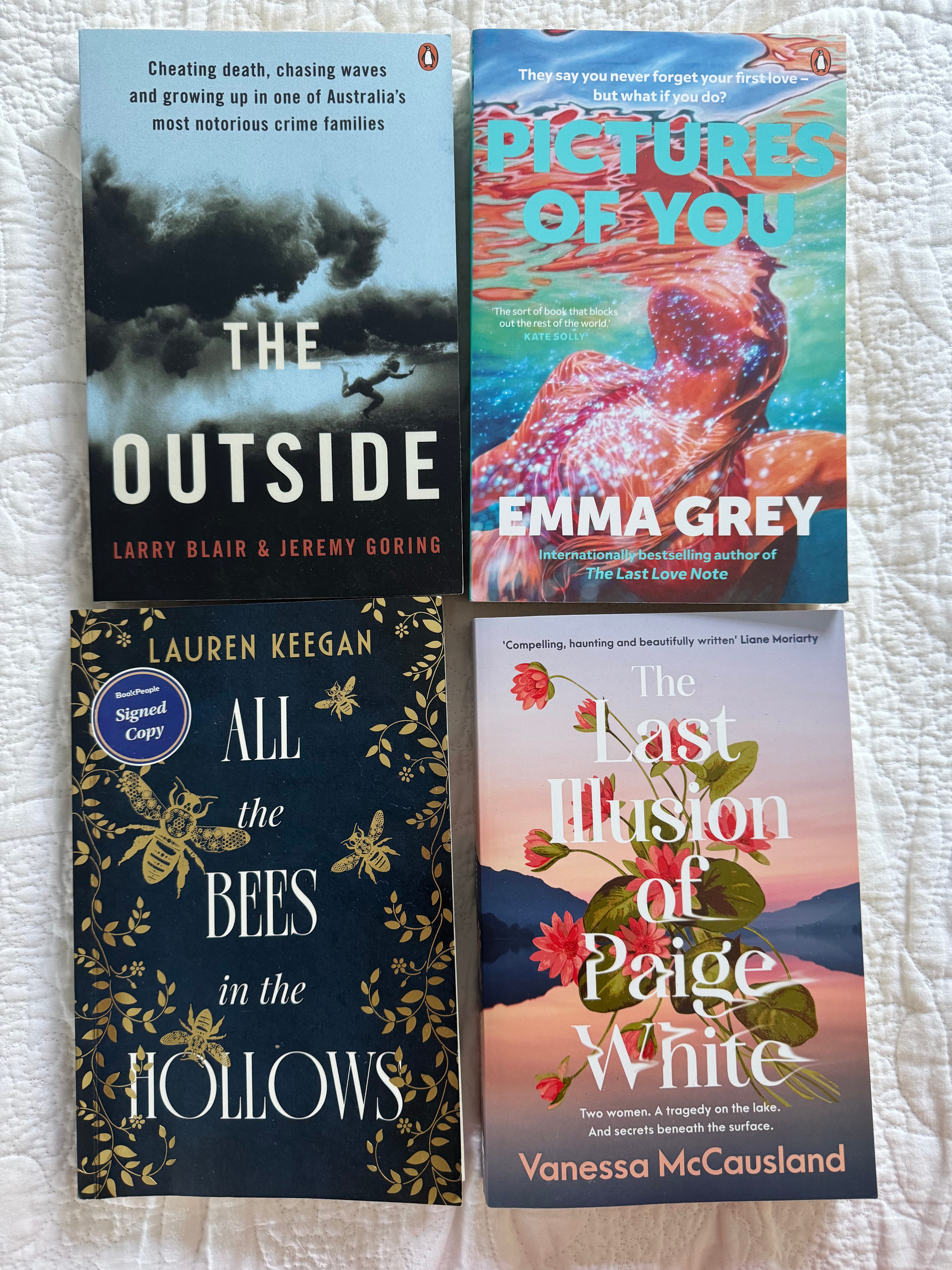 I’ve been reading All the Bees in the Hollow, Lauren Keegan’s debut, over Christmas and I’m really enjoying it. The rest of these in my January stack I’ve been looking forward to reading. Vanessa McCauseland’s writing is always flawless and Emma Grey’s Pictures of You is getting rave reviews. The Outside had me intrigued because of the crime family element and its surfing and the ocean so it’s ticking a lot of boxes for me. Will report back on IG with reviews once done.