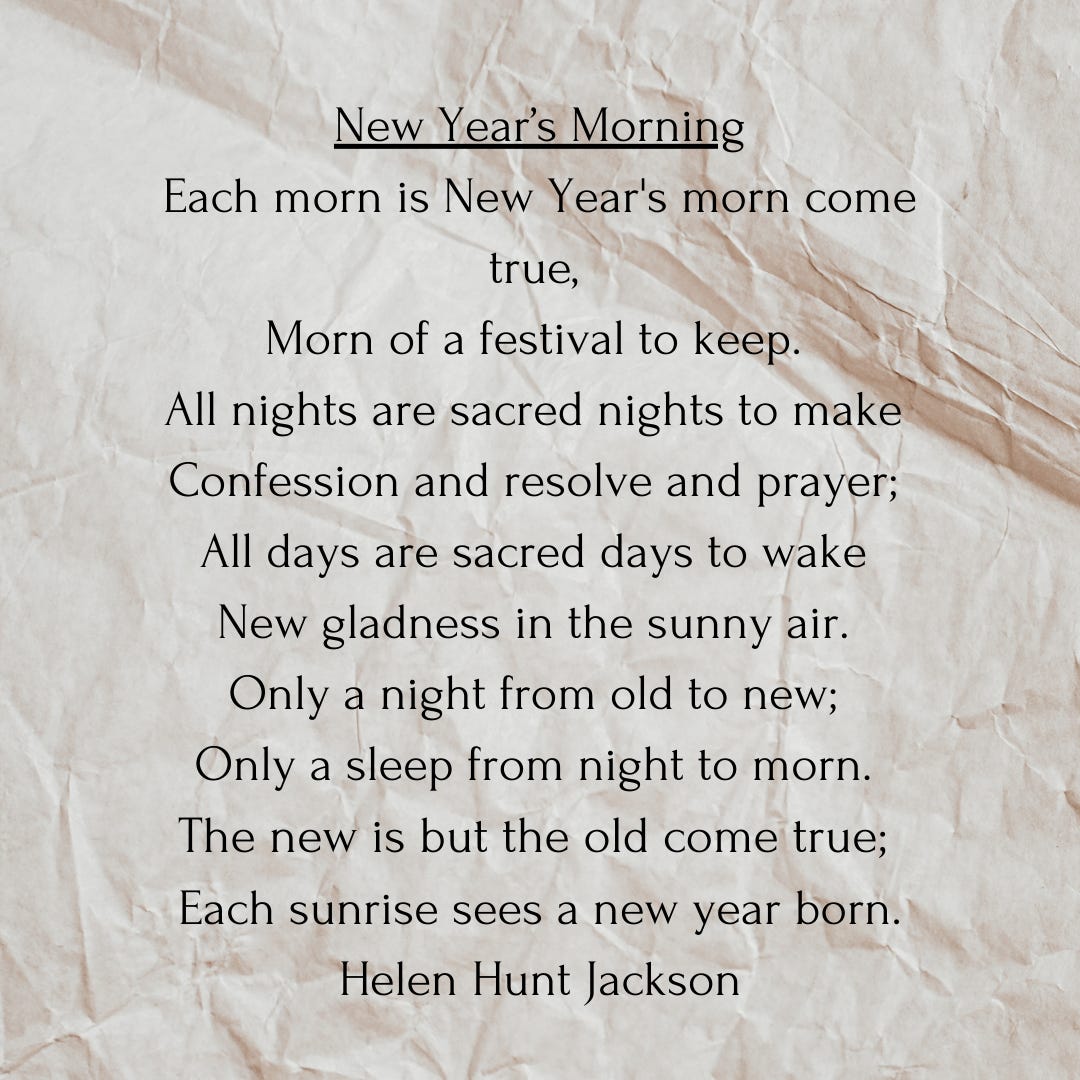 Last year I decided I wanted to read more poetry and so, thinking I should start from the beginning, I bought ‘A poet for every day of the year’. Some of them I can take or leave but some are gems. The below is for January first and, again, while there is always pressure at the start of a new year to have all your ducks in a row (or at least have a plan to) I love this poem’s reminder that really we have the shot to start fresh and invigorated every day of the year, its just all about mindset.