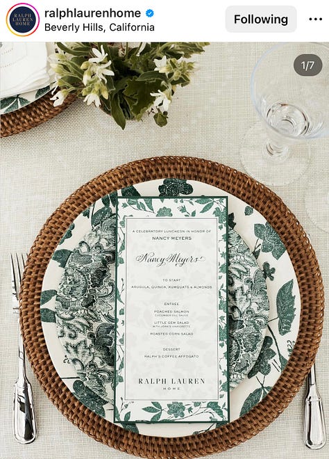 Similarly, the Design Los Angeles honorary lunch for Nancy Meyers looked absolutely superb and worthy of the goddess herself. Would have loved a seat at that table!