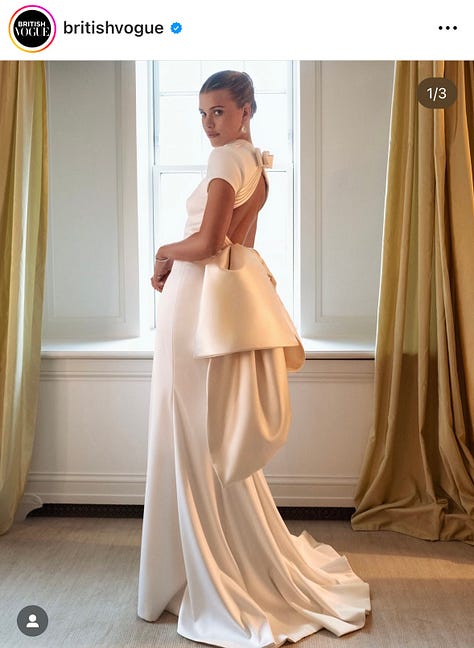 Sofia Ritchie’s dress won hands down for me and I think will inspire many a bride over the next year. I love a bow and had a similar one on my own backless wedding dress. Ritchie’s look was sophistication, classic with a touch of sexy. Perfection.