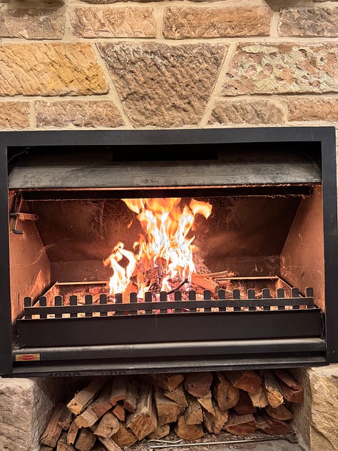 It’s time. The kids flank me. I strike a match, watch the flames lick and catch. The glow lights up their faces. There’s talk of roasted marshmallows, fire pits under the icy stars. We’ll do it all. I’ll sit with their bodies pressed to mine, hot cheeks and cold noses, smoke in my hair, look up at the Milky Way and marvel.