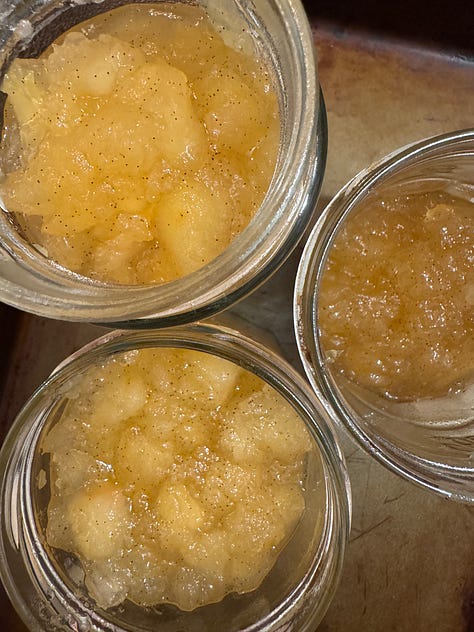I have sugar water bubbling on the stove, preparations for the amber-glimmering apple and vanilla bean jam I’ll conjure with the last of the apples from our tree in the little orchard we grew from scratch. The harvest was luscious this year, after having a year off last year and man does it bring me joy when it fruits like that. We’ll have apple crumble tonight too with pears and strawberries laced with cinnamon. The smell, of the sweet, of the spice. Oh the smell. It scents every room in the house.